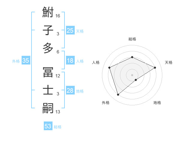 鮒子多 冨士嗣さんの総格は53画の3点!