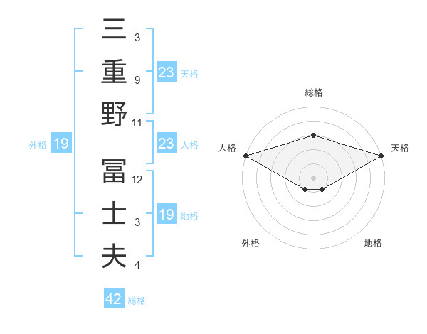三重野 冨士夫さんを姓名の画数から五運を鑑定