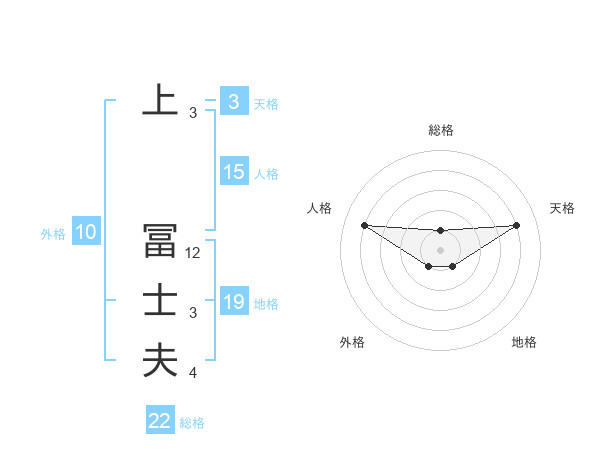 上 冨士夫さんの総格は22画の1点!