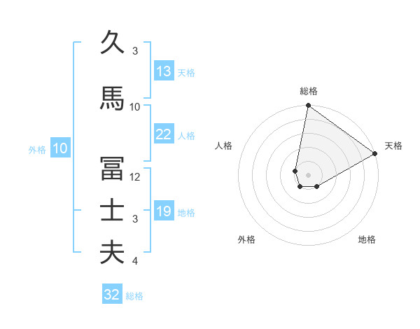 久馬 冨士夫さんを姓名の画数から五運を鑑定