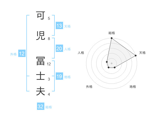 可児 冨士夫さんの総格は32画の5点!
