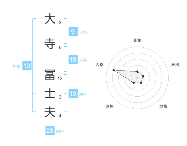 大寺 冨士夫さんを姓名の画数から五運を鑑定