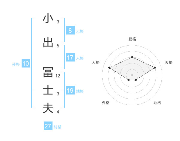 小出 冨士夫さんの総格は27画の3点!