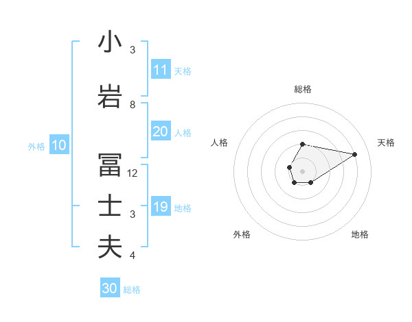 小岩 冨士夫さんの総格は30画の2点!