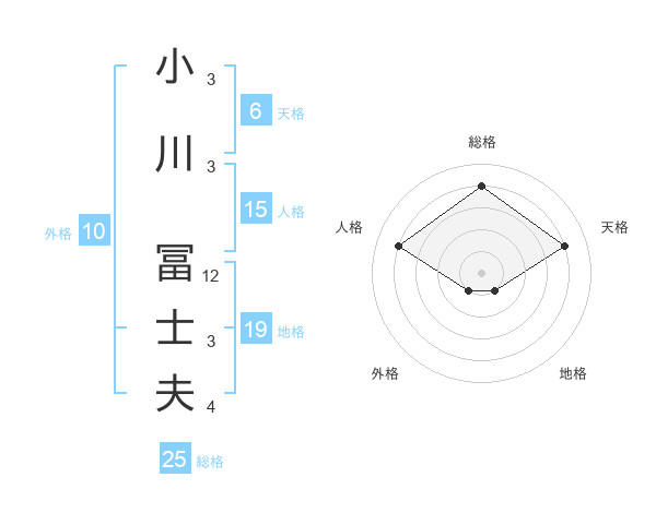 小川 冨士夫さんを姓名の画数から五運を鑑定
