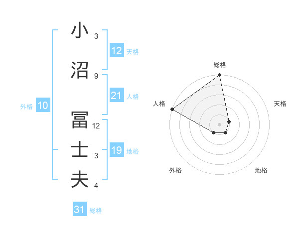 小沼 冨士夫さんを姓名の画数から五運を鑑定