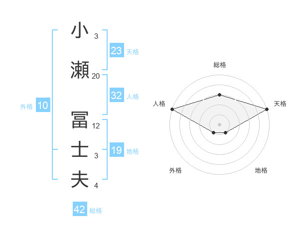 小瀬 冨士夫さんの総格は42画の3点!