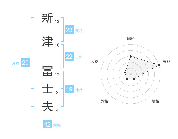 新津 冨士夫さんの天格は23画の5点!