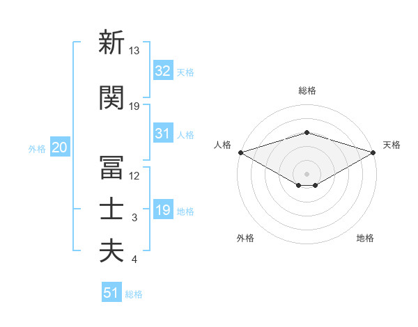 新関 冨士夫さんの総格は51画の3点!
