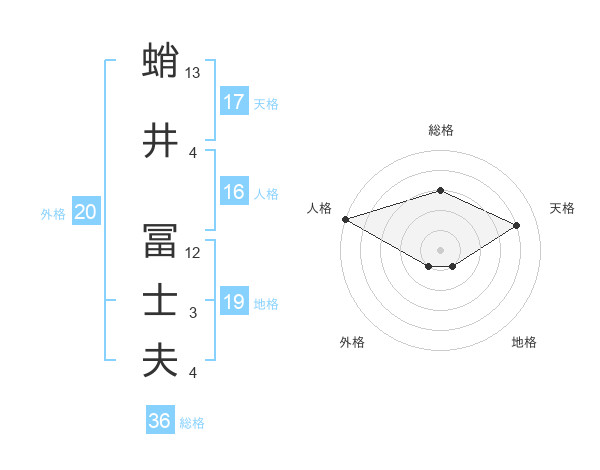 蛸井 冨士夫さんを姓名の画数から五運を鑑定