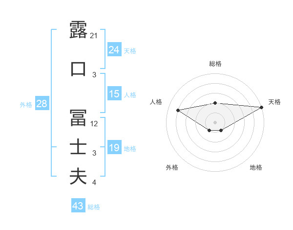 露口 冨士夫さんを姓名の画数から五運を鑑定