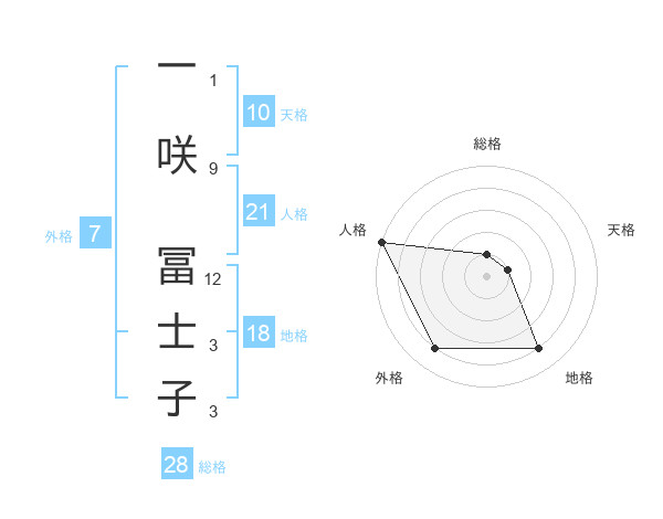 一咲 冨士子さんの総格は28画の1点!