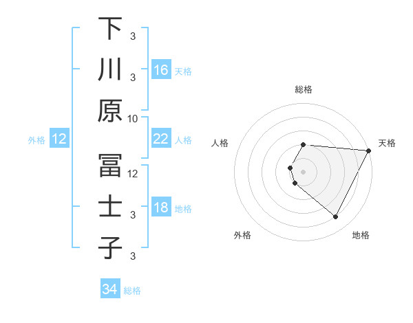 下川原 冨士子さんの総格は34画の2点!