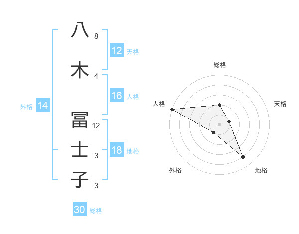 八木 冨士子さんを姓名の画数から五運を鑑定
