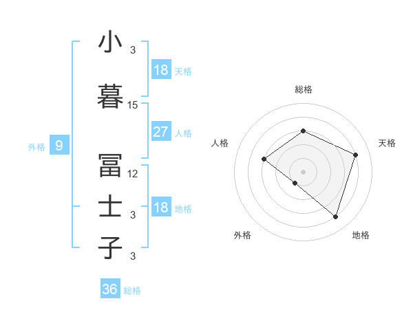 小暮 冨士子さんの天格は18画の4点!