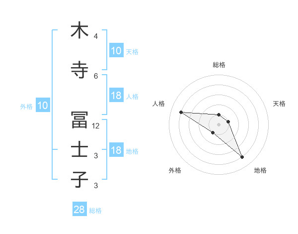 木寺 冨士子さんの総格は28画の1点!