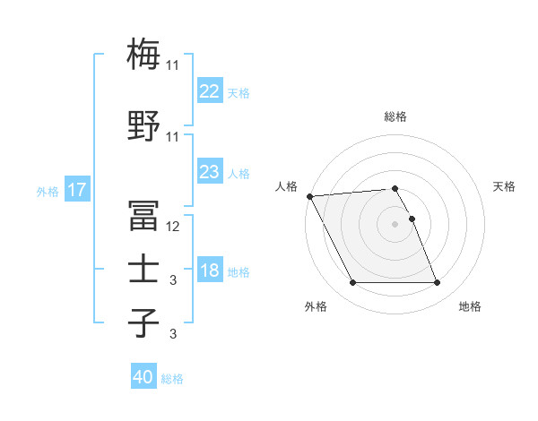 梅野 冨士子さんの総格は40画の2点!