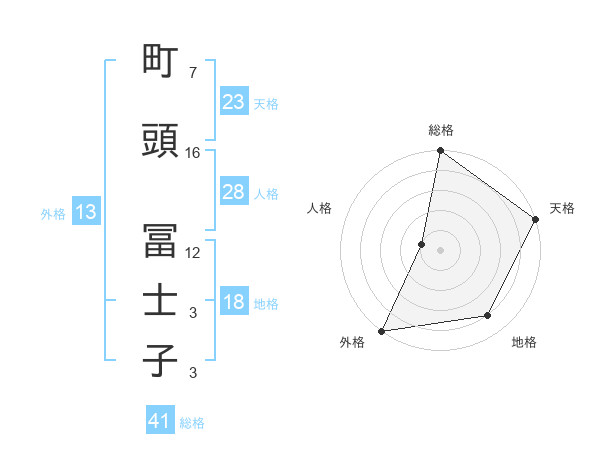 町頭 冨士子さんの外格は13画の5点!