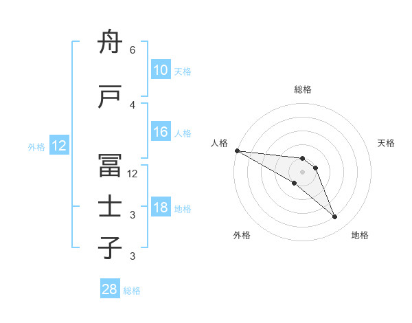 舟戸 冨士子さんを姓名の画数から五運を鑑定