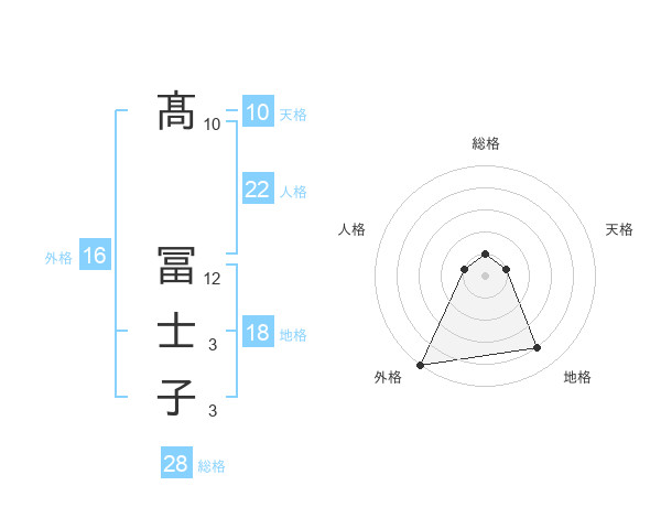 髙 冨士子さんの総格は28画の1点!