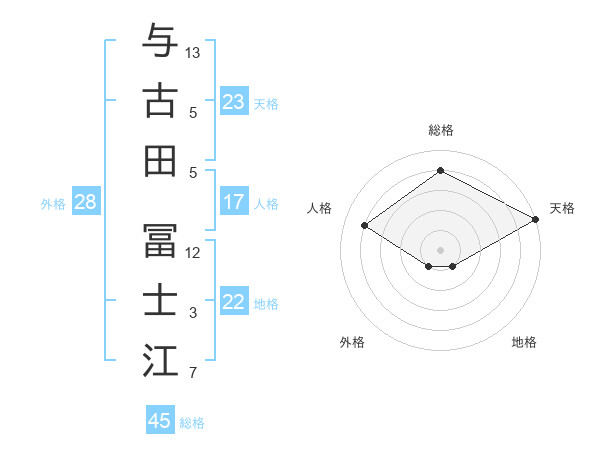 与古田 冨士江さんを姓名の画数から五運を鑑定