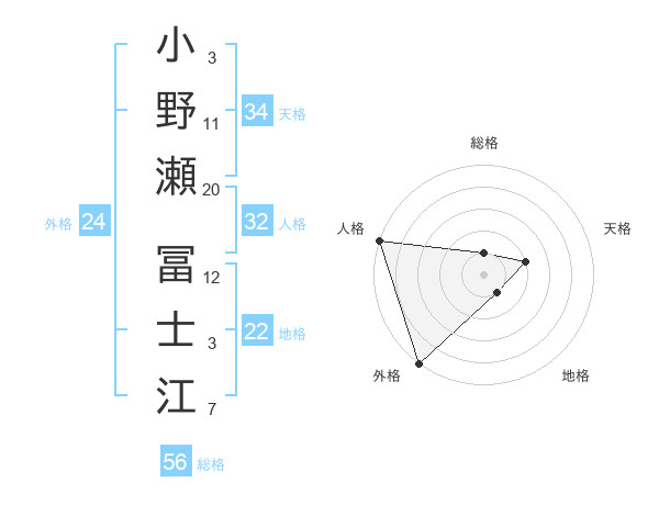 小野瀬 冨士江さんを姓名の画数から五運を鑑定