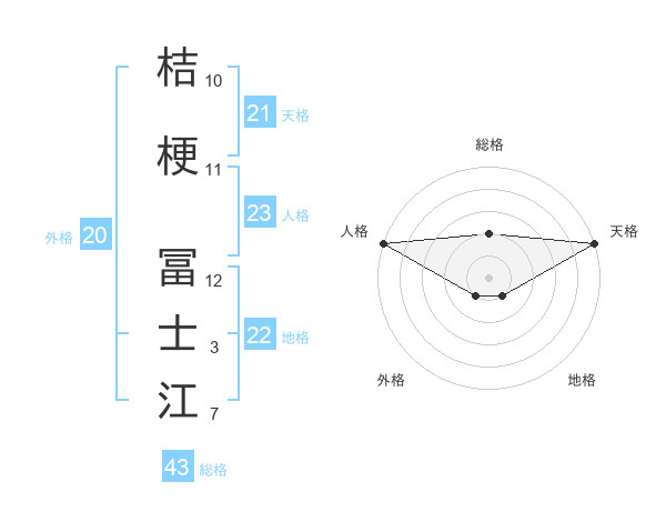 桔梗 冨士江さんの天格は21画の5点!