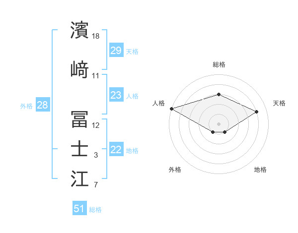 濱﨑 冨士江さんを姓名の画数から五運を鑑定