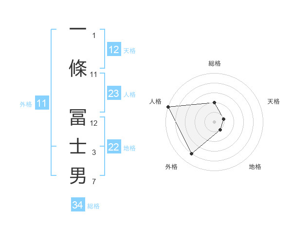 一條 冨士男さんを姓名の画数から五運を鑑定