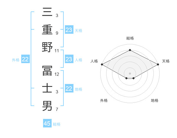 三重野 冨士男さんを姓名の画数から五運を鑑定