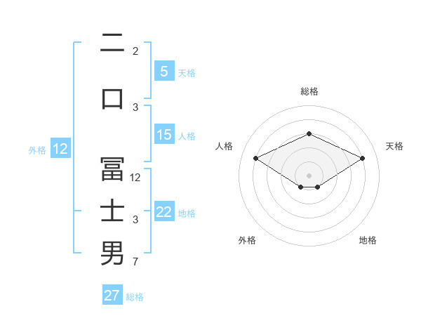 二口 冨士男さんの総格は27画の3点!