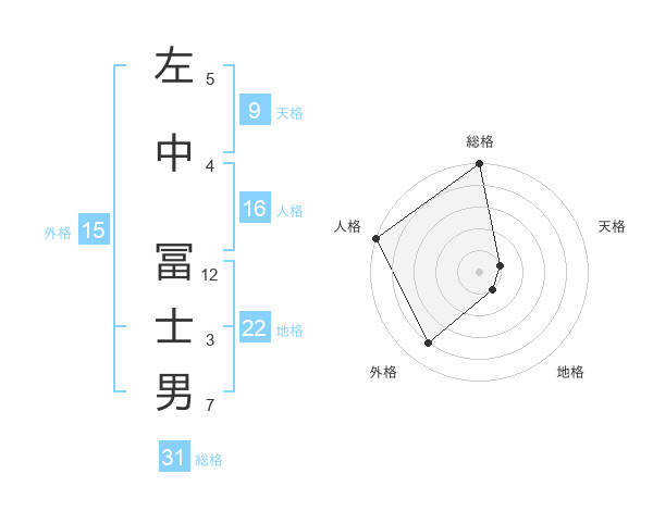左中 冨士男さんの総格は31画の5点!