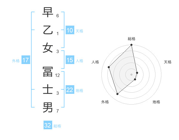 早乙女 冨士男さんの総格は32画の5点!