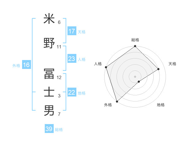 米野 冨士男さんを姓名の画数から五運を鑑定