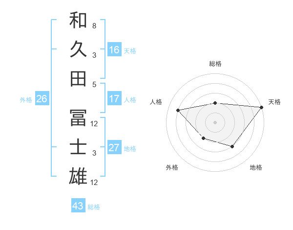 和久田 冨士雄さんを姓名の画数から五運を鑑定