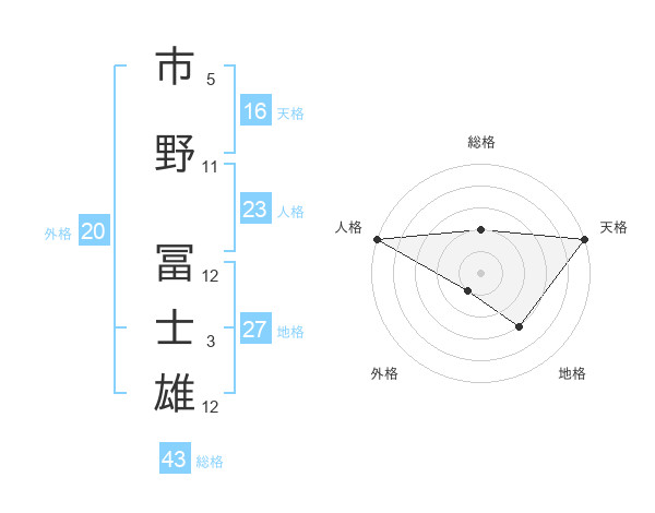 市野 冨士雄さんを姓名の画数から五運を鑑定