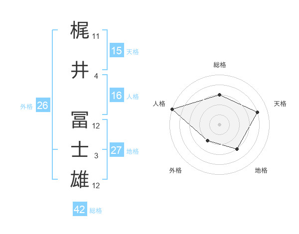 梶井 冨士雄さんの地格は27画の3点!