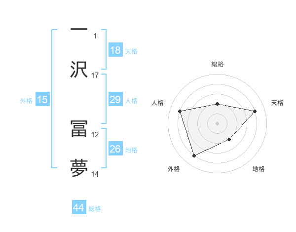 一沢 冨夢さんの総格は44画の2点!