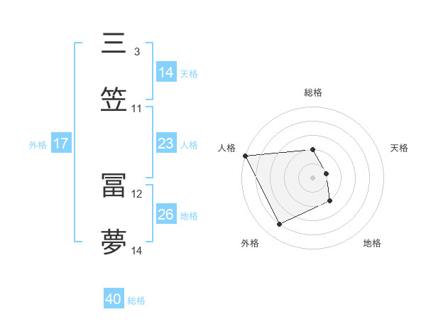 三笠 冨夢さんを姓名の画数から五運を鑑定