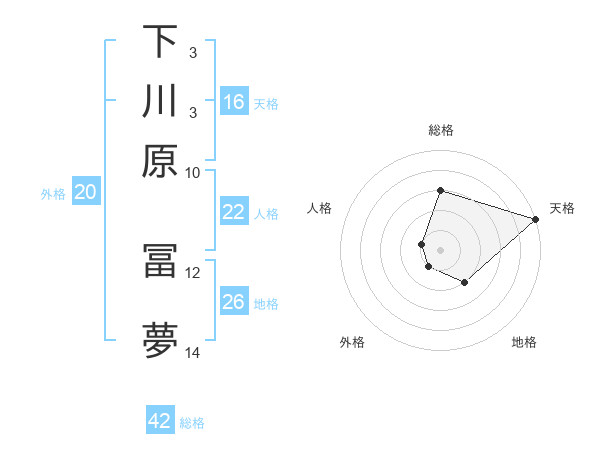 下川原 冨夢さんを姓名の画数から五運を鑑定