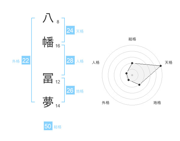 八幡 冨夢さんの総格は50画の2点!