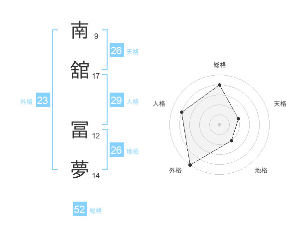 南舘 冨夢さんを姓名の画数から五運を鑑定