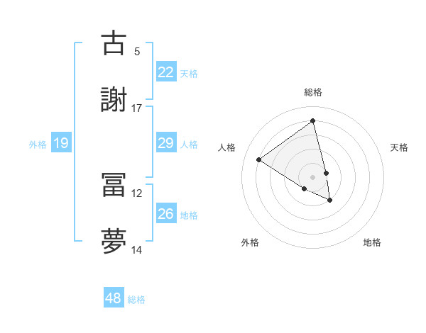 古謝 冨夢さんを姓名の画数から五運を鑑定