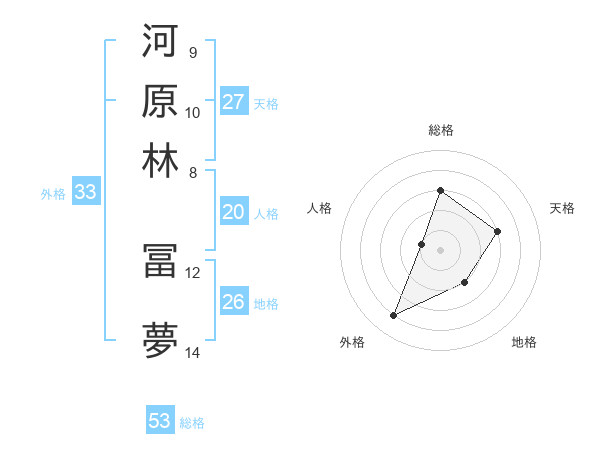 河原林 冨夢さんの総格は53画の3点!
