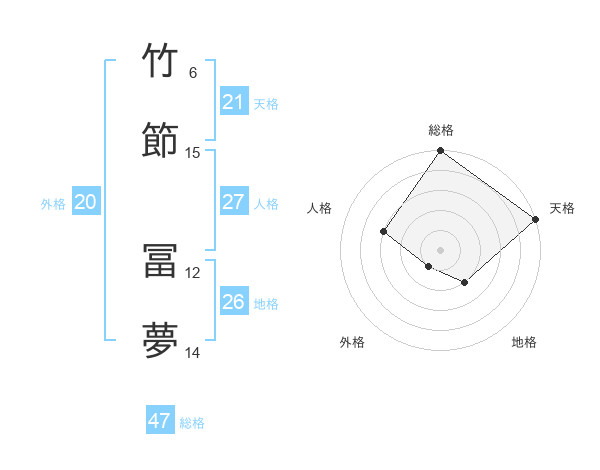 竹節 冨夢さんを姓名の画数から五運を鑑定