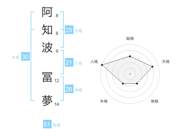 阿知波 冨夢さんを姓名の画数から五運を鑑定