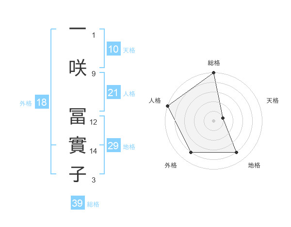一咲 冨實子さんの総格は39画の5点!