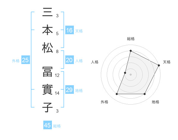三本松 冨實子さんの天格は16画の5点!