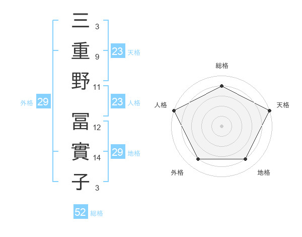 三重野 冨實子さんを姓名の画数から五運を鑑定