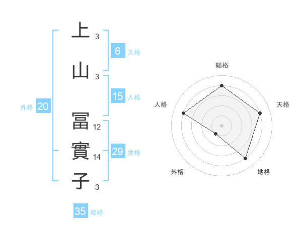 上山 冨實子さんを姓名の画数から五運を鑑定